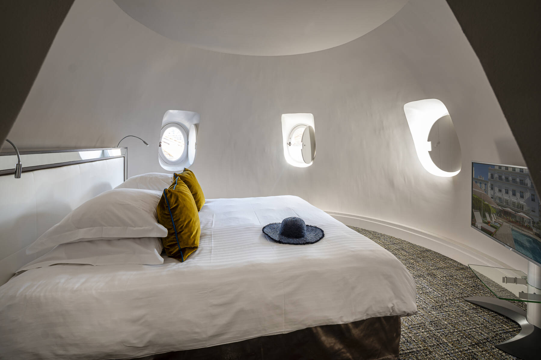 A l’apogée du raffinement, la Suite Prestige dispose d’un patio intérieur et d’un espace salon, séparé de la chambre en rotonde.